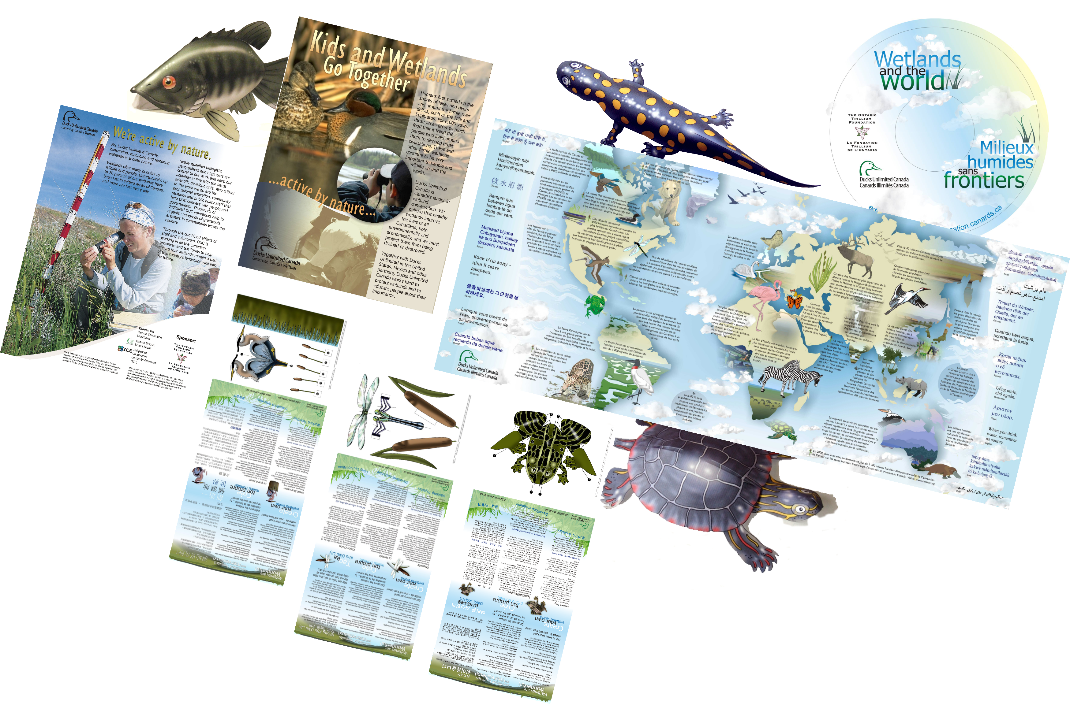 Cross-functional program celebrating cultural diversity within an environmental education program targeted at senior elementary students. Select pieces executed in Arabic, Spanish, Korean, Punjabi, Chinese, Cree, Ojibwe, Vietnamese, French, English, Urdu and Somali.